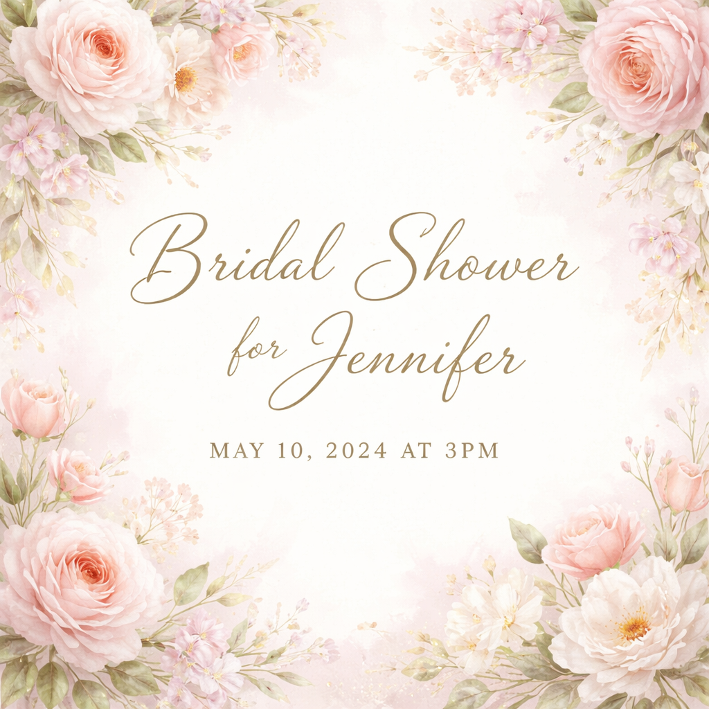 Please join us for an elegant afternoon tea to celebrate Jennifer's upcoming wedding to David! We'll be honoring the bride-to-be with games, gifts, and lots of love. Jennifer is registered at Crate & Barrel and Williams Sonoma. Dress code: Garden Party Chic.