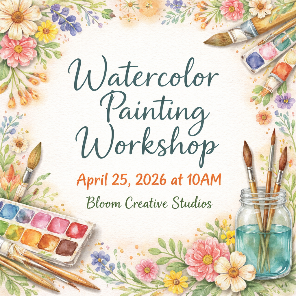 Discover the beauty of watercolor painting in this hands-on beginner-friendly workshop! Led by local artist Sarah Chen, you'll learn essential techniques including wet-on-wet washes, color mixing, and layering. By the end of the session, you'll take home your own completed landscape painting. All supplies are provided — just bring your creativity and curiosity. Space is limited to 15 participants to ensure personalized instruction. Please RSVP to reserve your easel!